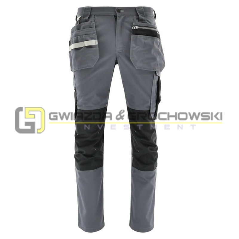 Spodnie robocze Monter łączą funkcjonalność z komfortem użytkowania, zapewniając dużą swobodę ruchu podczas intensywnej pracy. Dzięki zastosowaniu elastycznych wstawek oraz praktycznemu układowi kieszeni, idealnie sprawdzą się w wymagających warunkach. Elementy odblaskowe zwiększają bezpieczeństwo użytkownika w słabym oświetleniu.
