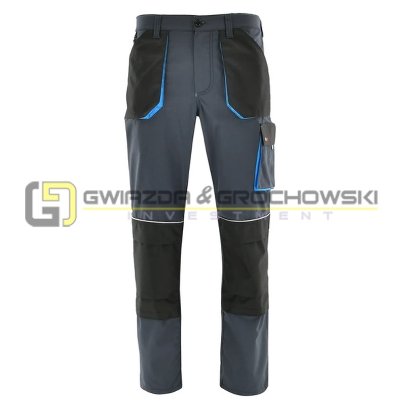 Uszyte z trwałej tkaniny typu rip-stop, która dzięki swojej strukturze minimalizuje ryzyko dalszego rozdarcia po uszkodzeniu. Kontrastowe detale w kolorze czerwonym lub niebieskim nadają spodniom charakteru i pozwalają dopasować odzież roboczą do własnych preferencji.
