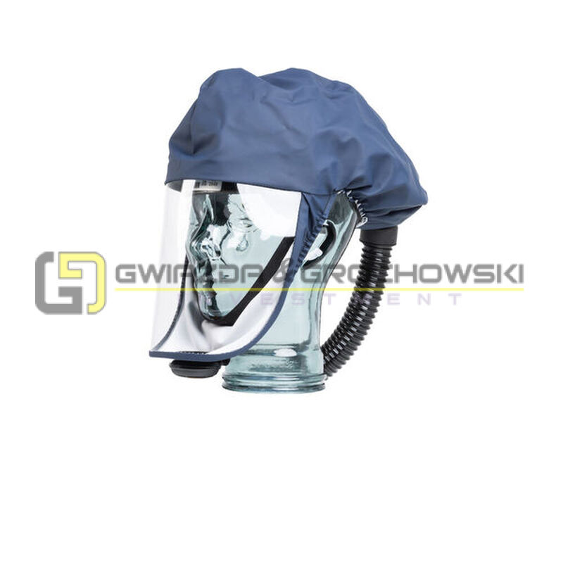 - Wąż oddechowy podłączany do kaptura zakończony jest wyposażoną w filtry i pochłaniacze jednostką wentylującą.