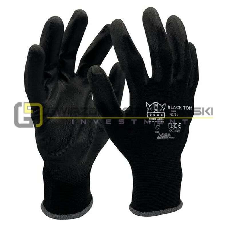 - rękawice ochronne wykonane z poliestru, powlekane poliuretanem zakończone ściągaczem,